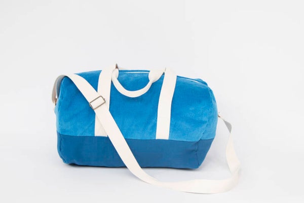 Een weekend- of sporttas gemaakt uit stof. De tas heeft 2 binnenzakjes en de schouderriem is op lengte verstelbaar.